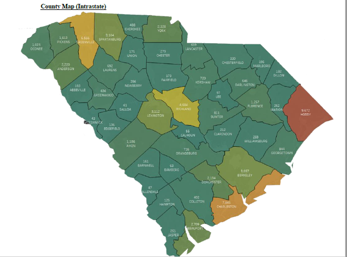 Workers in coastal counties Charleston and Horry — which rely heavily on the hospitality and tourism industries — filed the most claims during the week ending March 28. Charleston County workers filed 7,845 claims and Horry County workers filed 9,672 claims, the most of any county in the state.