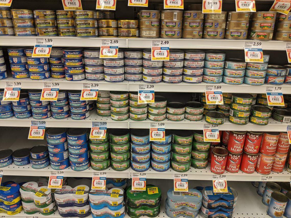 - The biggest price spreads were for ice cream ($1.95-$5.99), ground beef ($3.19-$6.29) and tuna ($0.68-$2.99).
