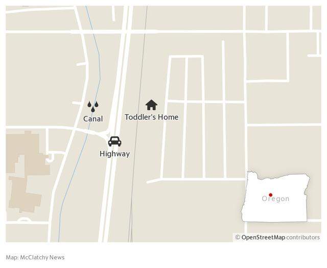 An Oregon woman raced across a highway to save a toddler from drowning in a canal, the Redmond Police Department said.