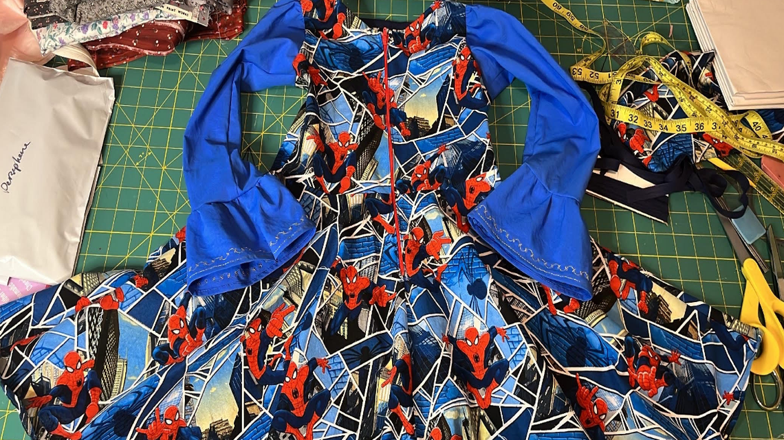 They had already decided on making a Spider-Man dress, and her son was searching for blue fabric for the sleeves, she said.
