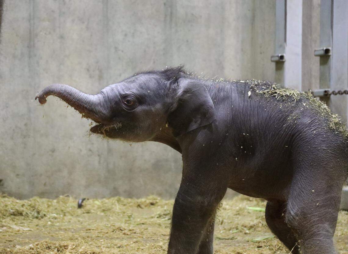Jet, the newborn named after a gemstone like his family members, was the first elephant at the zoo to be born through artificial insemination, the zoo said.