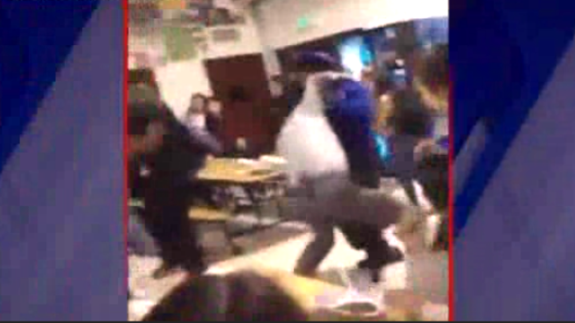 A fight broke out, drawing a school resource police officer, a school official and Principal Don Ross. Students gathered around, at least one recording the melee on a cellphone, as officials tried to break up the fight.