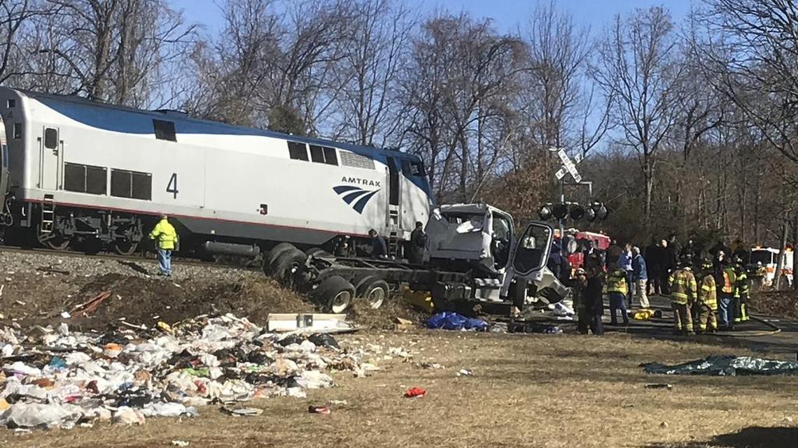 Cole said the front of the train hit a vehicle that appeared to be a trash truck, which he said was torn in half. He said the accident apparently occurred at or near a crossing because he could see railroad crossing gates.