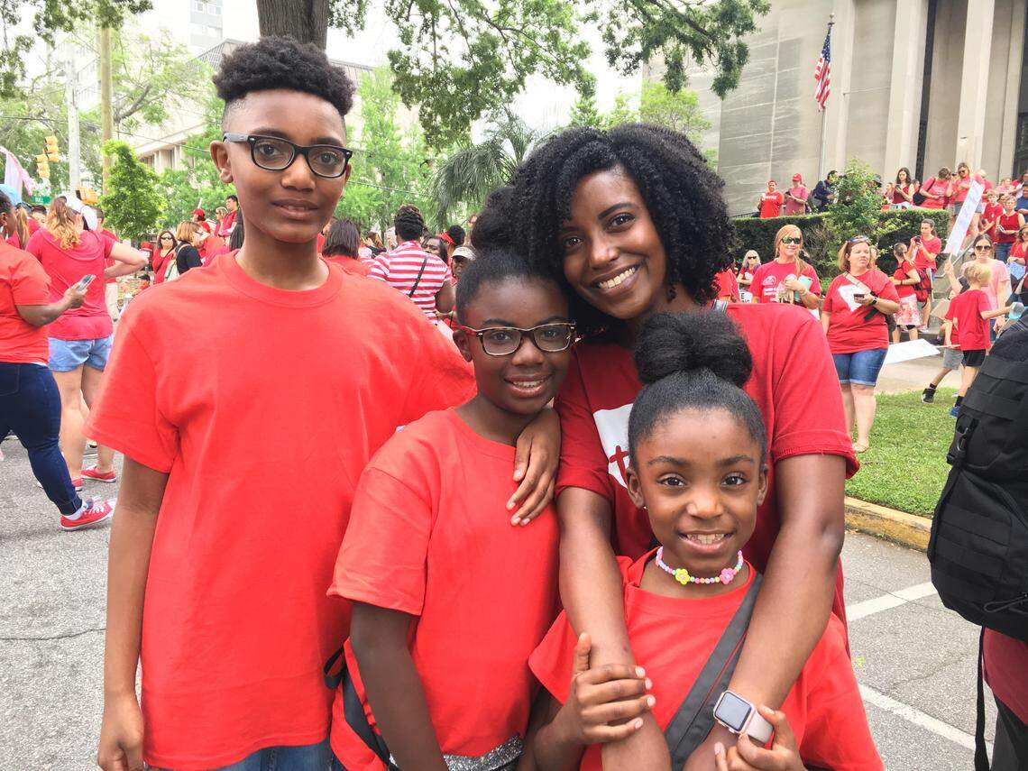 Richland 2 school district, where Amanda Bradley teaches, closed Wednesday, so she brought three of her four children with her to march.