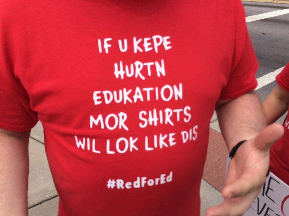 “It’s almost like they didn’t hear what we were saying,” Tadlock, 28, said, holding a sign that read: “My 2nd job paid for this sign #FullyFundEd.”