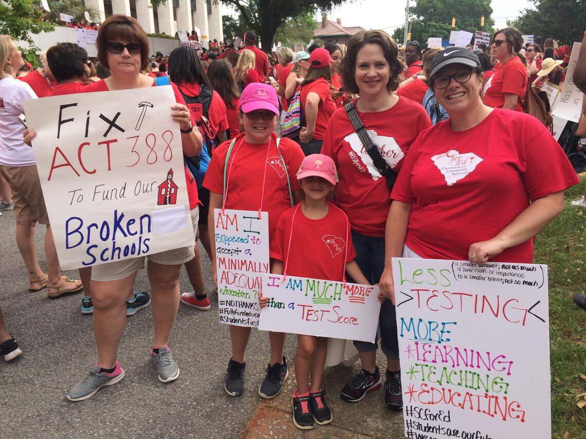 But the crowd of 10,000 teachers and their allies — students and children included — marching on the S.C. State House Wednesday traveled from all over the state. They shared their own stories on how they arrived there and why they were demanding better treatment.
