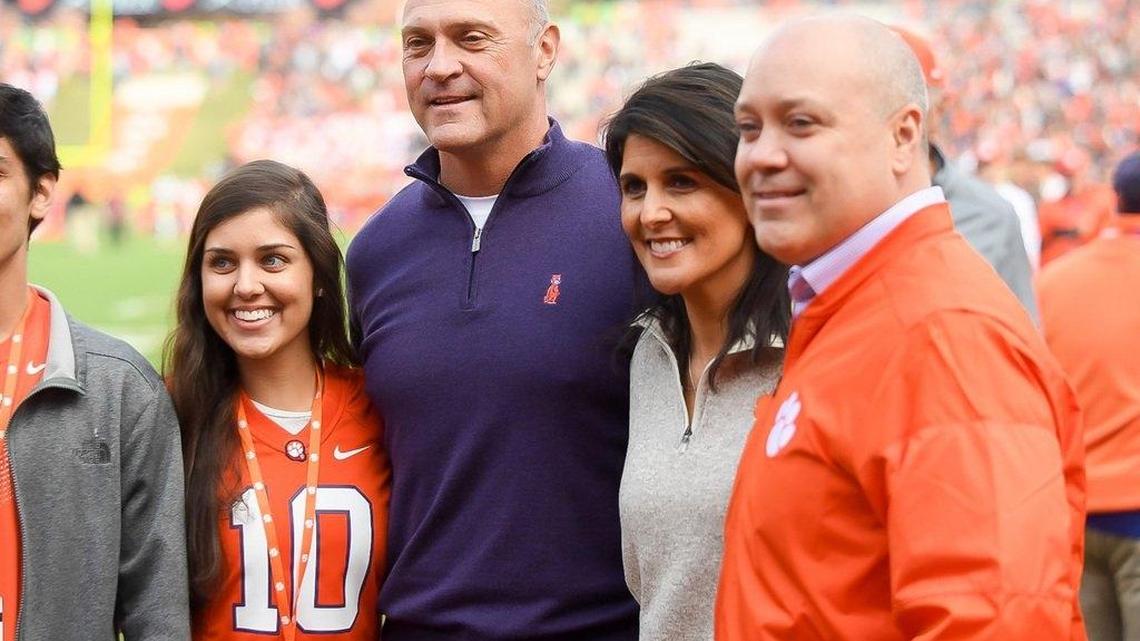 But on Saturday, she was back in her old stomping grounds. Along with being pictured with her husband, daughter and son, Haley also took pictures with Swinney and Clemson President Jim Clements.