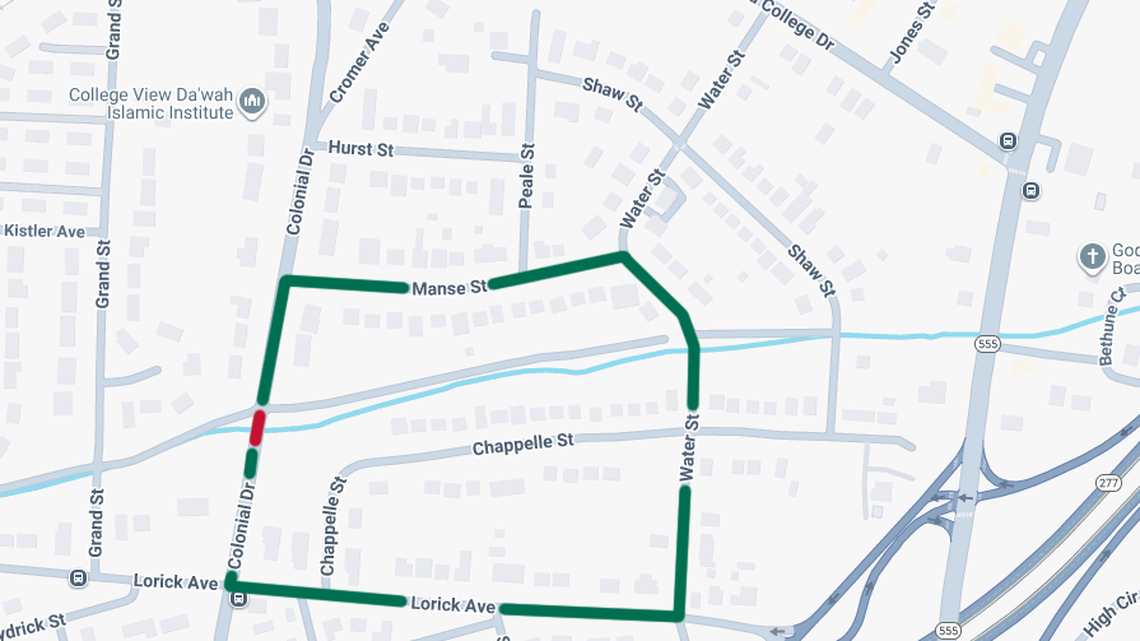 DOT suggests drivers take a detour around the closure on Lorick Avenue to Water Street to Manse Street back onto Colonial Drive.