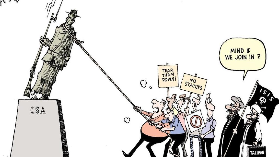 When I first saw Robert Ariail’s Aug. 17 cartoon, I thought I must have been misinterpreting it. He seemed to be implying that ISIS and the Taliban fell into the same category as the people wanting to take down Confederate statues. Then in her Aug. 22 column, “Here’s a better way to deal with offensive monuments,” Cindi Ross Scoppe doubled down, saying “the idea” behind the Taliban’s destruction of a giant sandstone Buddha near Kabul and was “the same” as removing Confederate statues.