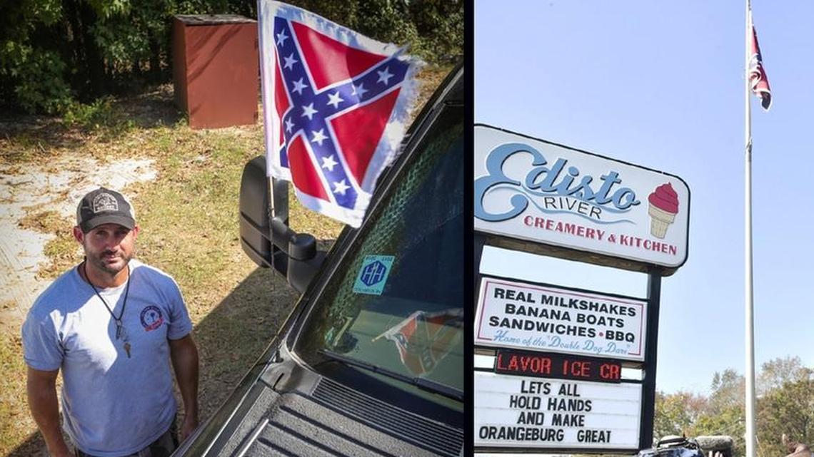 Mr. Daras tried to remove a Confederate flag flying from 130 square feet of privately owned property adjacent to his Orangeburg ice cream shop. When he was stymied by the owners, he lawyered up and asked the city to declare it a zoning violation, then went to court to appeal the city’s refusal. Now he is threatening vandalism over the flag that he finds offensive.