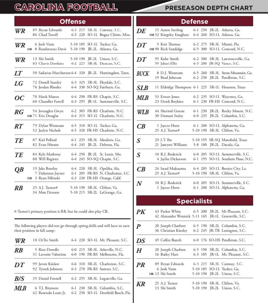 South Carolina sets first 2019 depth chart. Here it is, with several observations